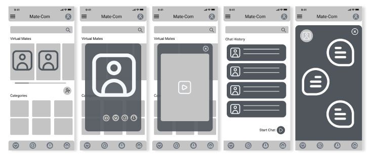 Mate-Com is a concept app to help socially isolated people, who feel lonely and depressed, have meaningful and human-like interactions with virtual companions through chat and call. Using the app they can share their feelings and thoughts and feel good about themselves again. The app offers a subscription-based service providing companionship to the users. The service is powered by an innovative conversational Artificial Intelligence (AI).